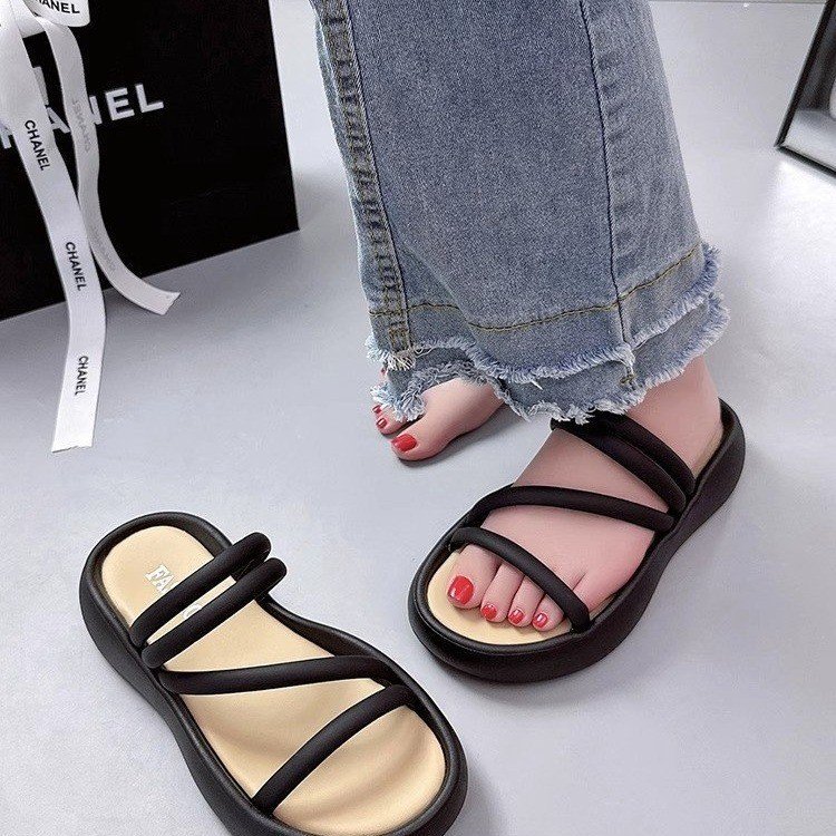 Product Description: Style: Casual Popular Element: Sponge heelToe shape:Round toeUpper material: PlasticApplicable gender: FemaleHeel height: FlatPattern: Solid colorColor: Black